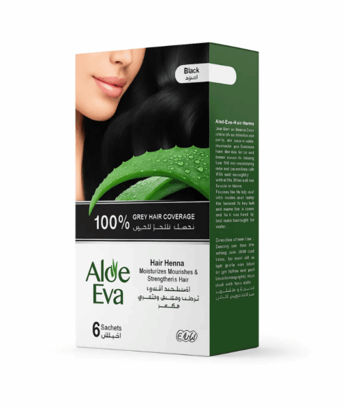 علبه 6 اكياس ايفا حناء طبيعي لتغطيه الشعر الابيض باللون الاسود وتغذيه وترطيب وتقويه الشعر بدون من الو ايفا الكيس 10 جرام