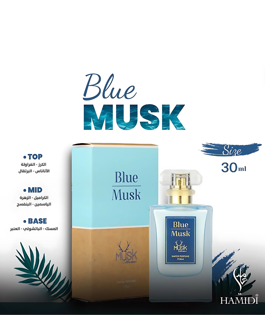برفان عطر المسك الازرق Blue Musk للجنسين ثبات وفوحان ورائحه مميزه تدوم طويلا بدون كحول 30 مل من حامدى للعطور الاماراتيه