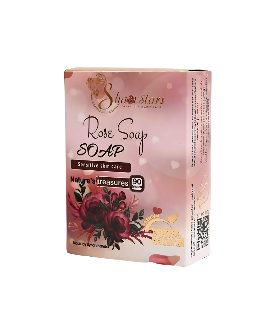 دلعي بشرتك برائحة الورد المميزة مع صابونة الورد من شام ستارز … تركيبة غنية بخلاصة الورد الطبيعي اللي بيمنح بشرتك إحساس بالانتعاش، النعومة والجمال كل يوم 🌸