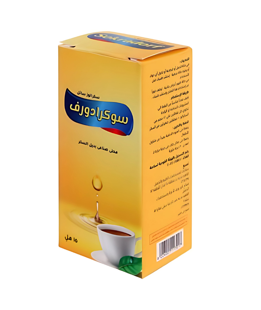 عبوة سكر دايت سكرادورف نقط بديل السكر خالي من الاسبارتم والسكرين والسعرات الحراريه والمواد الحافظه ولا يغير طعم 15 مل