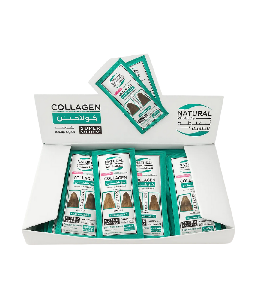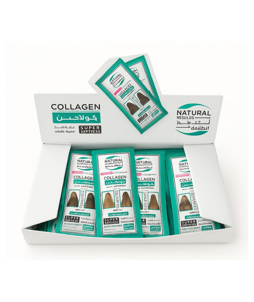كرتونه 24 كيس كريم بديل البروتين بالكولاجين لتنعيم ومنع تساقط وتقصف وتكثيف وفرد وترطيب الشعر من اول استخدام 35 جرام من نتائج الطبيعه